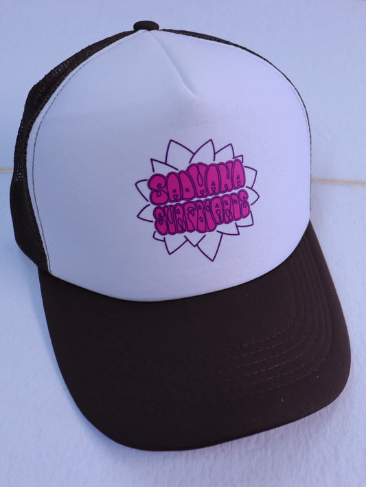 Mesh back panel with adjustable strap White front panel One size fits all